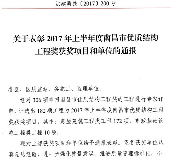 本報訊 由我公司承建的南昌市瑤湖郊野森林公園游客服務中心項目,在2017年度榮獲結構優良工程獎項。此次獲得的榮譽離不開中寧全體人員的共同努力,中寧在未來的發展中,也將秉承著“專業、優質”,不斷前行!