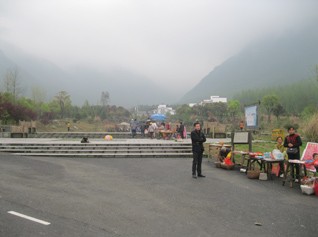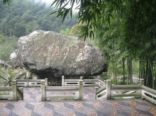 到達明月山,大家都迫不及待的下車。一下車,高高的明月山聳立在眼前,像是站在巨人的腳底下,感覺自己非常非常的渺小,比夢中想象的還要雄偉、高大。“莫急、莫急,大家先合個影”只聽見行政部付迎的呼聲,還好,此時正是大家對明月山驚訝的時候,沒有大家說話的聲音。不然,平時小聲小氣的付迎,是沒有辦法讓大家都能聽得見她的聲音的。