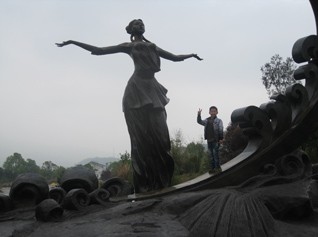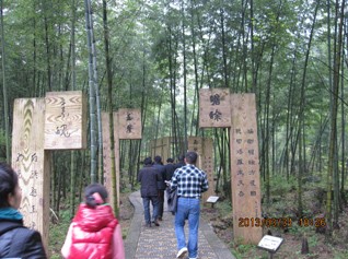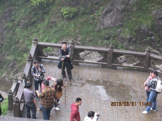 在明月廣場合完影后,大家一同欣賞著云姑沐月的唯美雕像。入景區(qū)的大門前擺放著各式叫賣的工藝品,無論大人與小孩都在停步觀賞,素不知還有更重要的事情在等待著我們。入大門整隊買票可不是件簡單的事情,由于今日天氣好,踏春的人比較多。整個團隊一同穿過詠月碑林時,大家都在嘆為觀止,因為,在無數(shù)的碑文上記載著先人與后人對于明月山的敬仰。在朱熹涼亭前,大家商議,如何踏上明月山。因來的人群中有中寧幼小的子民,考慮再三,分兵兩路。幼童坐纜車上去,徐聰為小分隊隊長;其他成年人等,徒步上山,蔡文斌為先鋒官,胡董為隊長。在目視小分隊踏上纜車的小途時,我們也開始了今天的艱巨任務(wù),完成踏上明月山的中寧夢想。