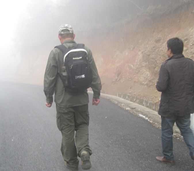 爬山的過程中,我一直都排在隊伍的最后,也是因為這個原因,我也欣賞到了每個隊員不同角度的風彩。在霧中,帶領(lǐng)我們前行的胡董,猶如一位巨人,支撐和引領(lǐng)著我們這個遠行的團隊。似曾相識的巨人,對了,這不是我昨日夢中的巨人嗎?此刻,巨人的肩膀和高高飄揚的中寧旗幟,那夢中的意境浮現(xiàn)眼前。只不過,與夢不同的是,由于領(lǐng)袖的召喚和自己的行動,離巨人的距離更近了一步。